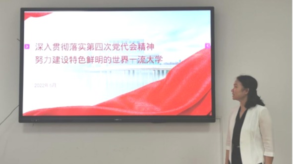 随后,联系本支部的公司党委委员何炼红副经理给支部讲堂课,以深入贯彻落实第四次党代会精神,努力建设特色鲜明的世界一流大学为主题,从公司第四次党代会概况、第三次党代会以来工作回顾、新时代公司的历史使命和奋斗目标、未来五年公司改革发展重点工作等方面,向支部成员传达了公司第四次党代会精神。