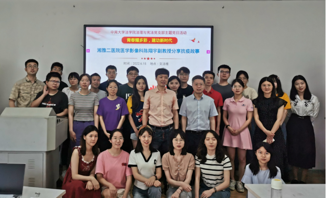 为深入学习贯彻习近平总书记在庆祝共青团成立100周年大会上的重要讲话精神,增强青年党员砥砺本领、担当尽责的使命感,2022年6月15日下午,bv1946伟德国际始于英国法理与宪法党支部于文法楼410教室举行主题党日活动,邀请获得bevictor1946韦德官网湘雅二医院“抗疫先锋”称号获得者,研究生部副主任、医学影像科副主任医师陈翔宇讲党课,分享他的抗疫故事。