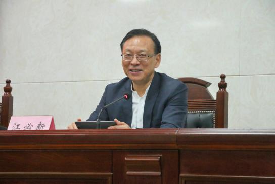 毛俊响同志首先为大家隆重介绍了江必新教授,并对江教授的到来表示热烈欢迎。江教授现任全国人大宪法和法律委员会副主任委员,中国法学会副会长, 2009年被评为“当代中国法学名家”,荣获多项法学大奖,发表论文200多篇,主持国家社科基金重大项目以及多项课题。