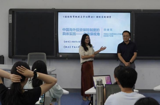 由于中国信保的业务范围与国际法专业员工学习内容“海外投资保险制度”的高度契合,田建东同志以“中国海外投资保险制度的具体实践——中国信保视角”为题,为党员同志及同学们进行专题分享。课程伊始,邓婷婷同志从党的政策方针角度出发,结合国家涉外法治建设战略,带领同学们简单回顾了海外投资保险制度的相关内容,为后续的实务讲解奠定了理论基础。