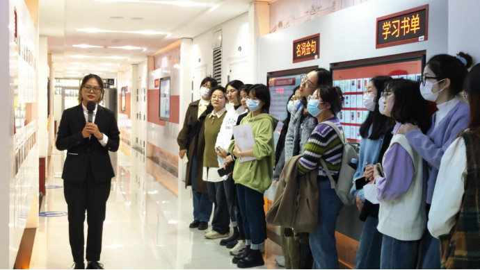 在参观活动中,大家认真聆听学习,积极参与互动。张靓同志就“坚持全面依法治国,推进法治中国建设”部分发表了自己的心得体会。她提出,作为法学专业员工,要充分发挥专业优势,运用所学所得为推进全面依法治国、在法治轨道上全面建设社会主义现代化国家贡献力量。在“非凡十年”部分,陈艳秋同志分享了家乡交通工具等基础建设的变化,以“绿皮火车”到“复兴号”的变化观察中国共产党的领导下中国十年的飞速发展,号召大家积极投入到建设社会主义现代化国家的事业中,做有理想、敢担当、能吃苦、肯奋斗的新时代好青年。