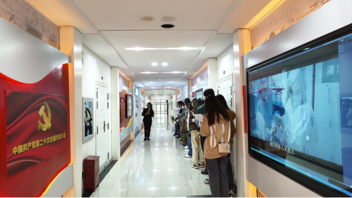 讲解员从大会盛况、光辉历程、非凡十年、理论创新、使命任务、发展新局、名词金句、学习书单、代表风采、视听盛会十个专题出发,带领支部党员深刻领会党的二十大的主题、新时代十年的伟大变革、新时代新征程中国共产党的使命任务等内容,深入学习党的二十大报告中确定的重要思想、重要观点、重大战略、重大举措。
