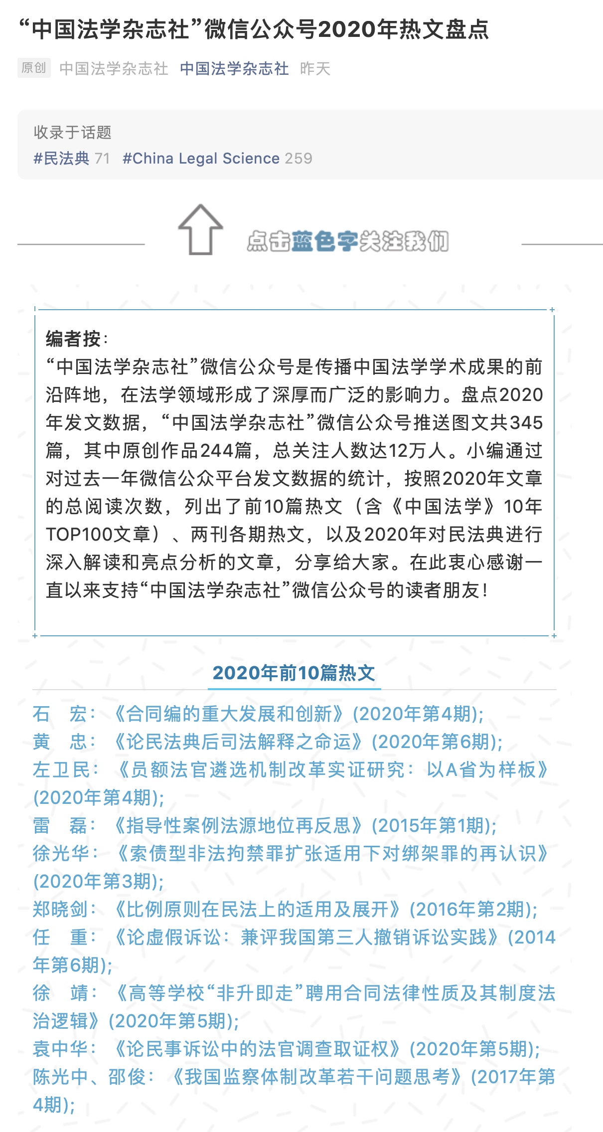 徐靖教授撰写的论文入选《中国法学》2020年前10篇热文