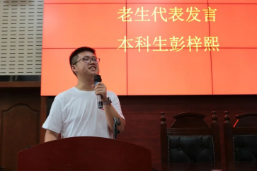 接着,老生代表2019级bevictor1946韦德官网本科生彭梓熙以“写好我们的故事”为题发言,为同学们分享了自己的本科学习生活和学长学姐们的经验故事,建议同学们在未来的学习生活中不断思考“想要怎样度过、想要收获什么、想要成为怎样的人”三个问题,写好自己的故事,成为自己想成为的人。