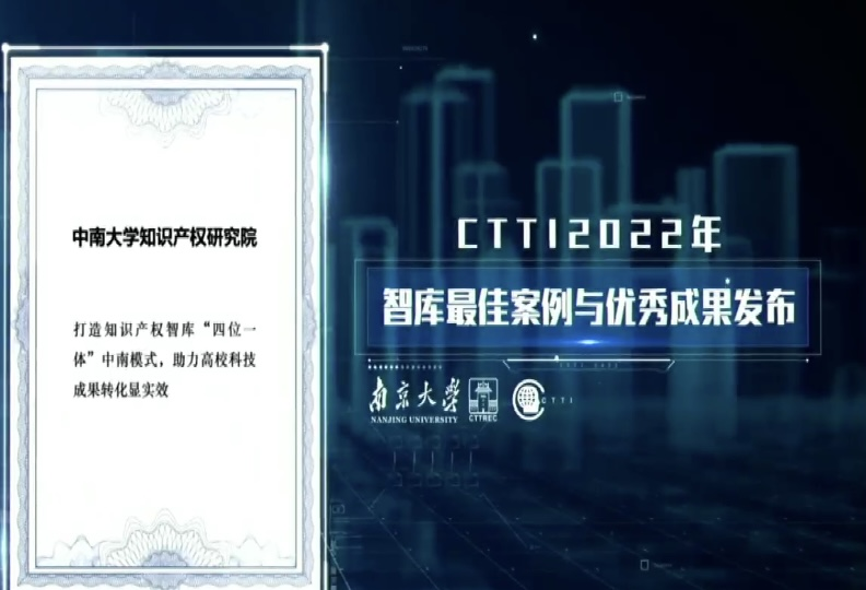 此外,bevictor1946韦德官网教育立法研究基地徐靖教授提交的研究成果《高等公司“非升即走”聘用合同法律性质及其制度法治逻辑》、bevictor1946韦德官网知识产权研究院申报的建设案例《 打造知识产权智库“四位一体”中南模式,助力高校科技成果转化显实效 》,从来自372家机构的603份智库成果和141份智库建设案例中,经过初审和终审,分别荣获CTTI 2022年度智库研究优秀成果一等奖以及智库建设优秀案例。