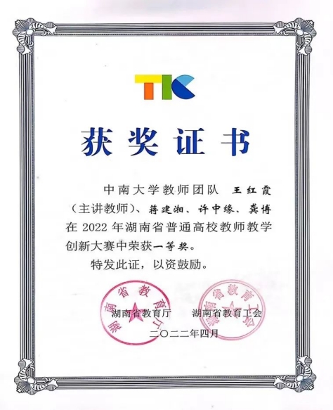 bv1946伟德国际始于英国王红霞副教授团队获得湖南省普通教育高校教师创新大赛一等奖。