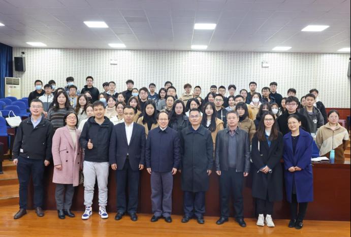 【副董事长柴立元院士为支部讲授党课后同党员们合影】