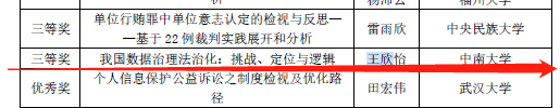 法学本科员工唐建林、汤茗琰、吉一丹(指导老师:郑泽星老师)共同撰写的《侵犯公民个人信息罪“情节严重”的标准认定探析》荣获司法大数据征文赛道“本科生组”优秀奖。