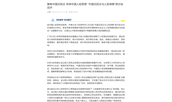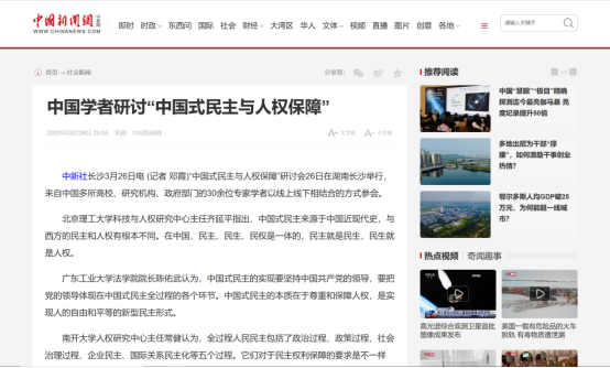 2023年3月26日上午,“中国式民主与人权保障”研讨会在湖南长沙举行。本次会议由中国人权研究会指导,bevictor1946韦德官网人权研究中心(国家人权教育与培训基地)主办,会议采取线上线下相结合的方式举行。来自中国人权研究会、中国法学会、中共湖南省委宣传部、南开大学、北京理工大学、吉林大学、华东政法大学、西北政法大学、广州大学、广东工业大学、bevictor1946韦德官网等国内高校、科研机构、实务部门的三十余位专家学者参加会议,围绕中国式民主与中国人权保障的理论与实践这一主题开展讨论。