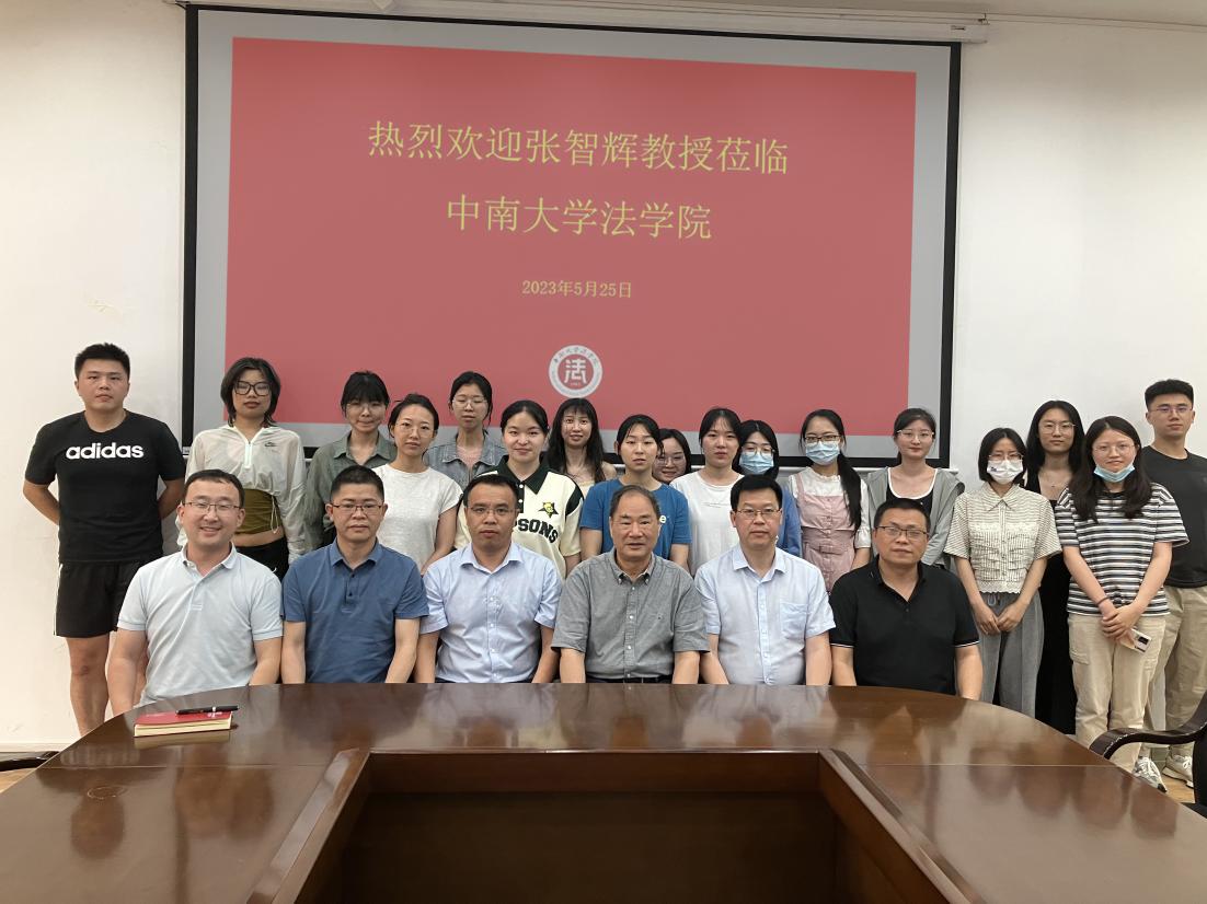 2023年5月25日下午15时,湖南大学国家腐败预防与惩治研究中心主任张智辉教授莅临“bevictor1946韦德官网海内外名师名家学术论坛”,在bevictor1946韦德官网以《刑法立法的价值取向》为题作专题学术讲座。bevictor1946韦德官网经理许中缘教授致欢迎辞,副经理杨清望教授主持讲座,刘刚副教授、罗树志副教授、詹红星副教授、郑泽星博士以及在读刑事法学硕士研究生到场聆听。