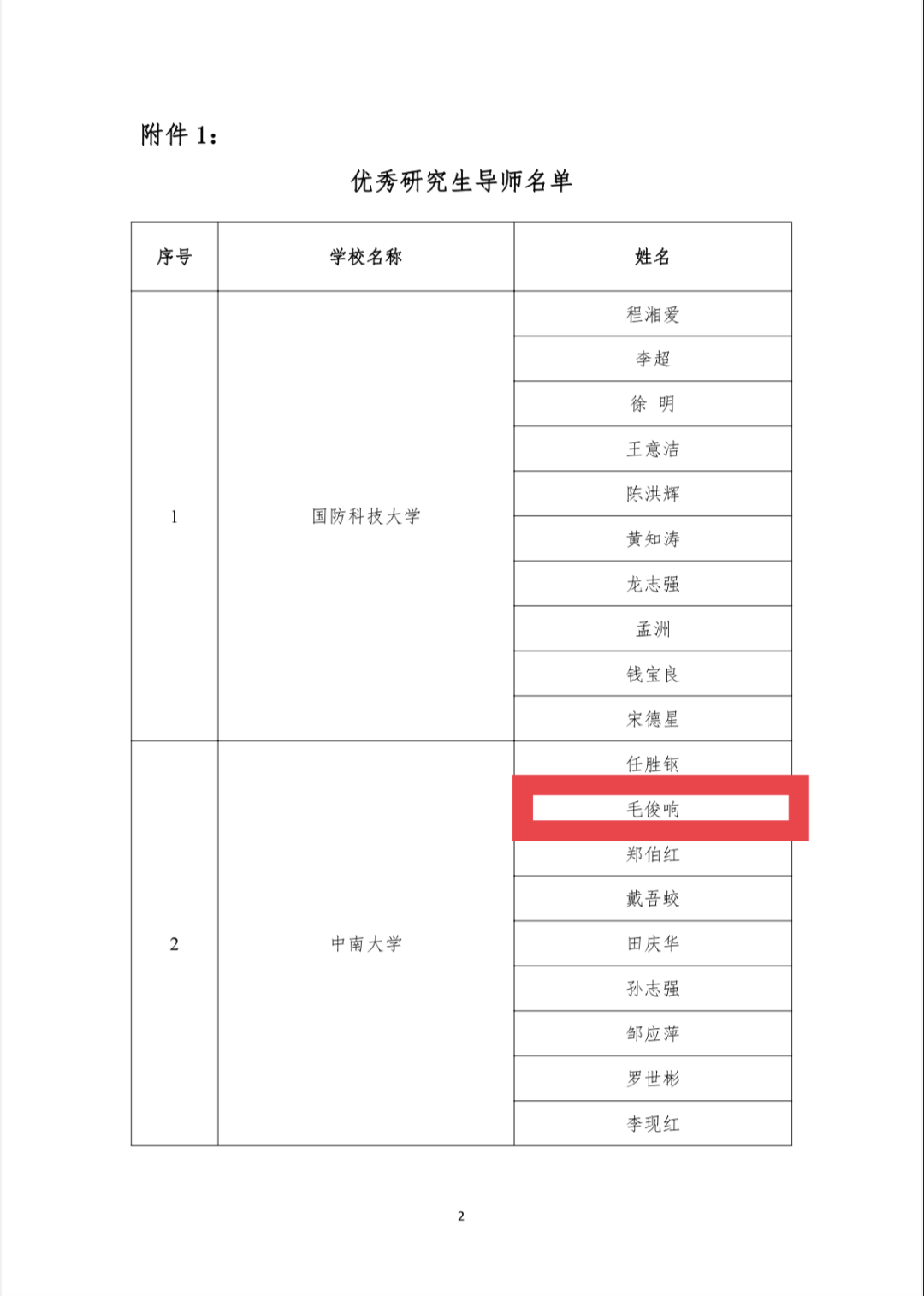 近日,2023年湖南省第三届“优秀研究生导师”和“优秀研究生导师团队”评选结果公布,公司毛俊响教授获评湖南省“优秀研究生导师”。