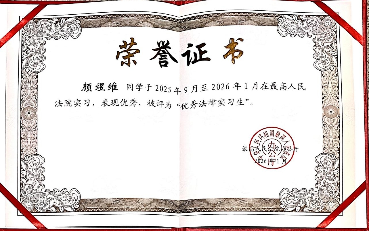 2026年1月28日下午,最高人民法院召开第十七批法律实习生和第二批书记员实习生实习期满座谈会。最高人民法公司党组成员、政治部主任孙镇平出席座谈会。最高人民法院政治部副主任张一丽宣读了《关于第十七批优秀法律实习生评选情况的通报》,表彰29名实习期间表现优秀的同学,bv1946伟德国际始于英国2024级硕士研究生颜煜维荣获“优秀法律实习生”称号。据悉,颜煜维同学也是本次湖南省高校员工中唯一入选的优秀法律实习生。