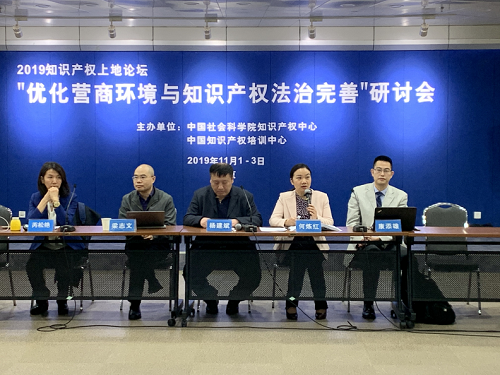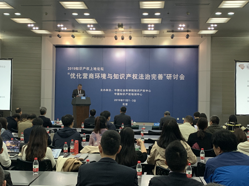 2019知识产权上地论坛“优化营商环境与知识产权法治完善”研讨会于11月1日至3日在北京中国知识产权培训中心举行。该论坛由中国社会科公司知识产权中心和中国知识产权培训中心联合主办,是国内知识产权领域重要的学术论坛之一。十三届全国政协、国家知识产权局、最高人民法院的领导、专家,以及全国有关研究机构、大学、法院、企业代表近300人参加论坛。