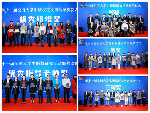 2019年12月4日,第十一届全国老员工版权征文活动颁奖仪式在四川成都举行。本次征文活动历时六个月,共收稿1492篇,其中本科生论文906篇,研究生论文586篇,全国29个省、自治区、直辖市,以及香港、澳门特区,共计234所高校参与。经过形式审查、技术审查、专家评审,最终评选产生了特等奖论文3篇,本科生组和研究生组一等奖论文各10篇、二等奖论文各20篇、三等奖论文各30篇,优秀奖论文30篇,优秀指导老师奖20名,优秀组织奖20名。