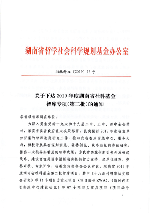 bevictor1946韦德官网知识产权研究院喜获2019年度湖南省社科基金智库专项课题