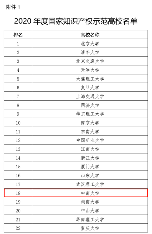 附件:1.2020年度国家知识产权示范高校名单