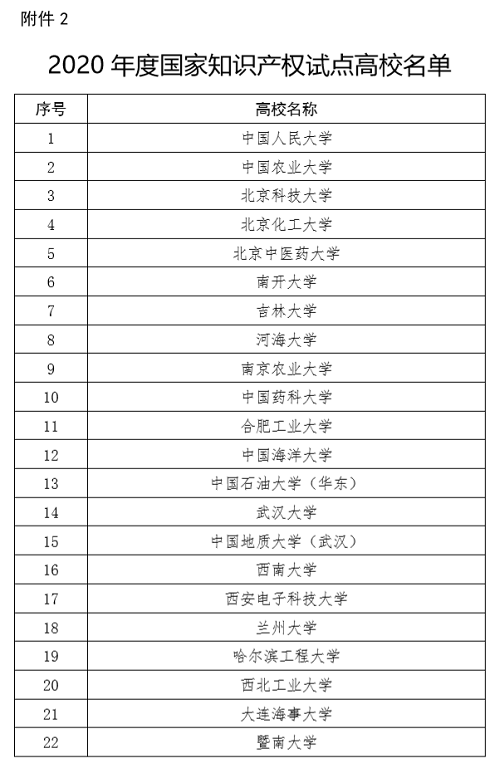 2.2020年度国家知识产权试点高校名单