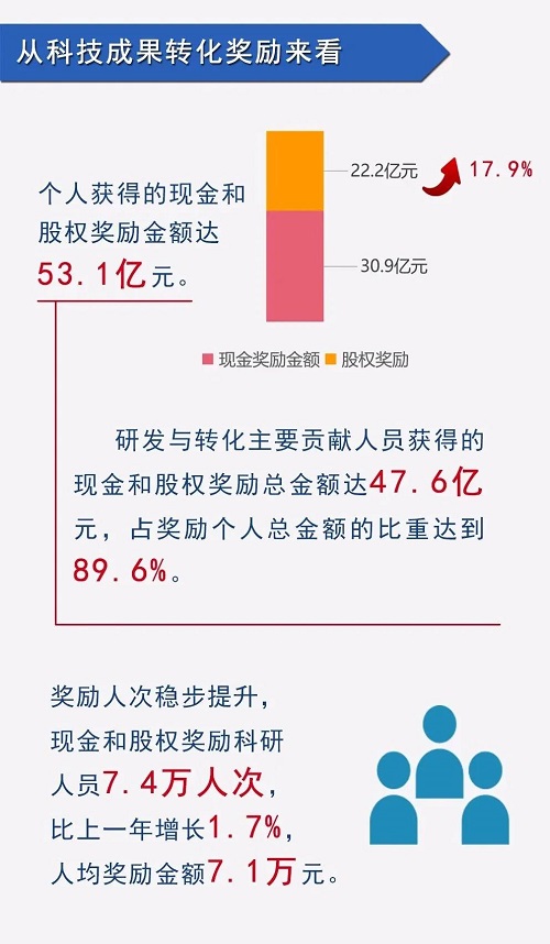 高校院所以转让、许可、作价投资方式转化科技成果获得的现金和股权收入奖励给科研人员的金额,与当年到账额(有的单位的当年到账额是2019年以前签订的转化合同的当年到账额)、各单位的具体操作办法、合同执行周期等因素密切相关。