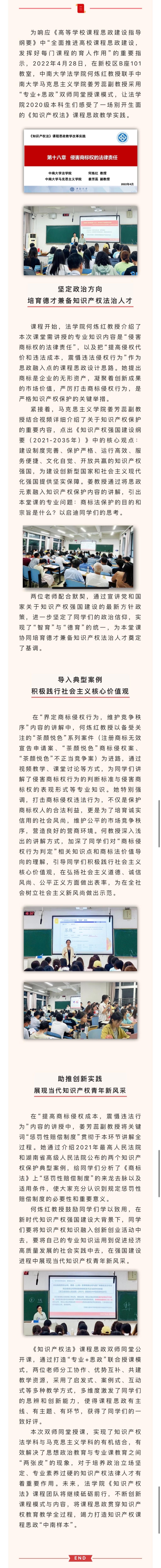 培育堪当强国建设重任的时代法治新人——记《知识产权法》“专业+思政”双师同堂开放课