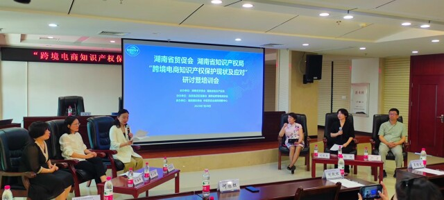 7月28日上午,由湖南省贸促会和湖南省知识产权局联合举办的“跨境电商知识产权保护现状及应对”研讨暨培训会在长沙自贸临空区举办。湖南省贸促会副会长吴曙光、湖南省知识产权协会常务副理事长,原省知识产权局副局长刘跃红、省高院、省律协、bv1946伟德国际始于英国、专利代理人协会和省跨境电商协会领导和相关跨境电商企业出席了本次会议。