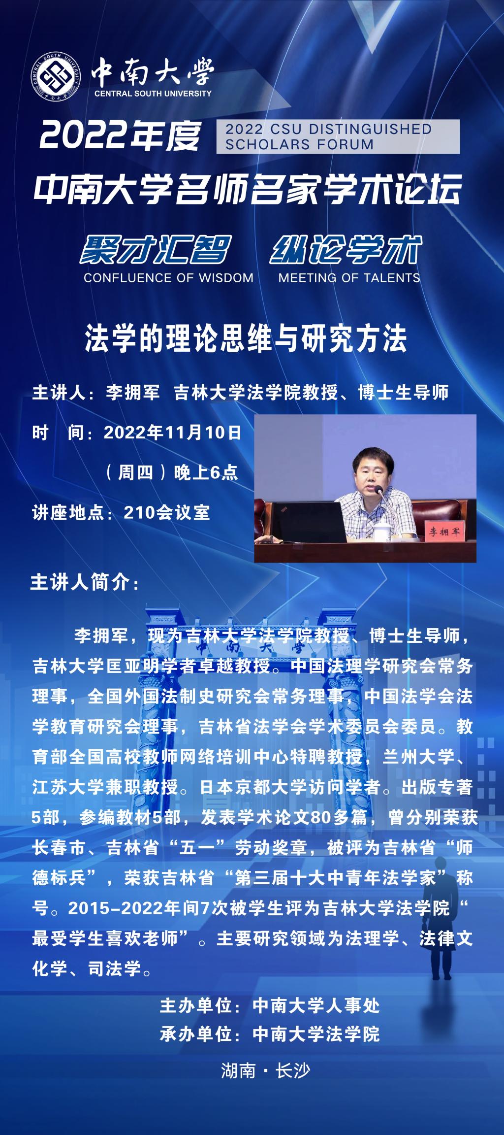 讲座预告 | 李拥军:法学的理论思维与研究方法