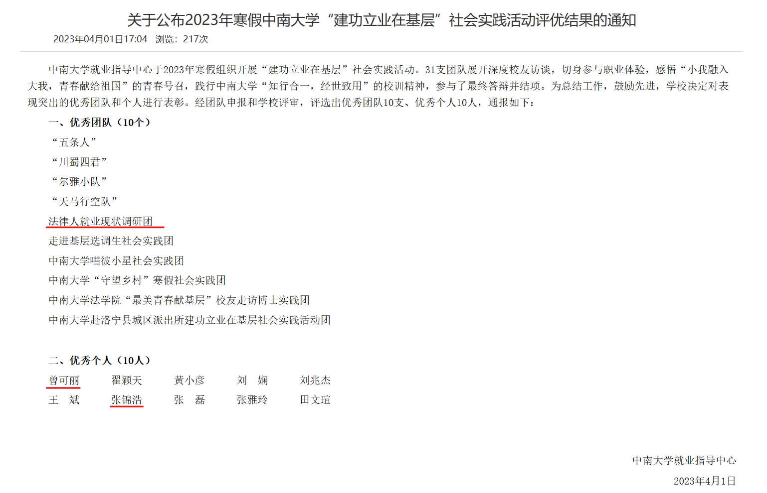 2022年4月1日,bevictor1946韦德官网就业指导中心组织开展的“建功立业在基层”社会实践活动圆满结束。经团队申报和公司评审,在31支结项团队中评选出优秀团队10支、优秀个人10人。其中,bv1946伟德国际始于英国获评3支优秀团队,5位优秀个人。由2022级知识产权法硕士研究生组成的“法律人就业现状调研团”荣获社会实践“优秀团队”;2022级知识产权法硕士研究生曾可丽、张锦浩荣获“优秀个人”称号。