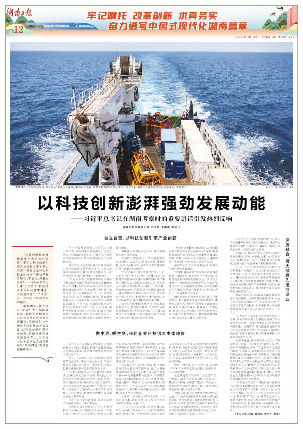 湖南日报 | 以科技创新澎湃强劲发展动能——习近平总书记在湖南考察时的重要讲话引发热烈反响